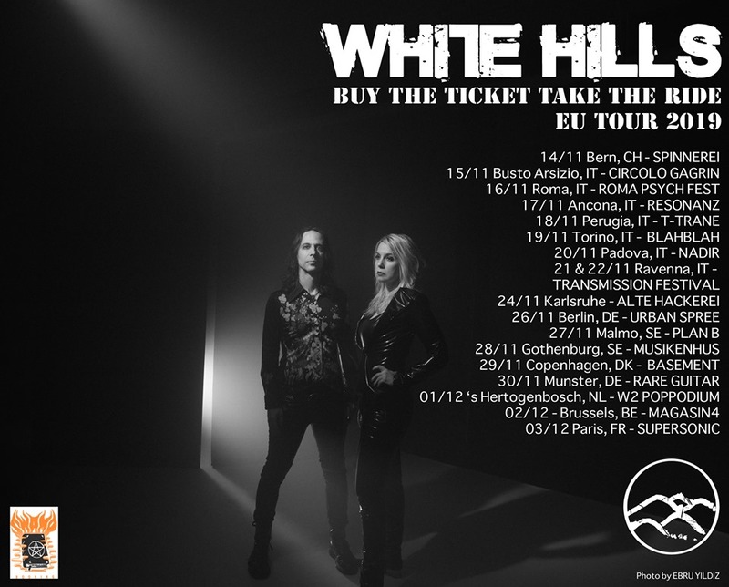 In collaborazione con Swamp Booking, la psych rock band americana WHITE HILLS intraprenderà un tour in Europa nei mesi di novembre e dicembre che si chiamerà 'Buy The Ticket Take The Ride' EU Tour 2019. Questo tour toccherà l'Italia per una serie di date a novembre, elencate di seguito.